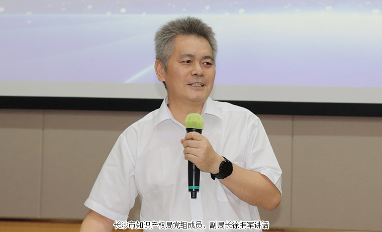 活動(dòng)最后,長(zhǎng)沙市知識(shí)產(chǎn)權(quán)局黨組成員、副局長(zhǎng)徐擁軍講話。他對(duì)本次活動(dòng)的成功舉辦表示祝賀并充分肯定了綠之韻集團(tuán)在深化商標(biāo)品牌建設(shè)及黨建工作方面取得的顯著成效。針對(duì)商標(biāo)品牌建設(shè)及知識(shí)產(chǎn)權(quán)保護(hù)他提出三點(diǎn)建議:一是企業(yè)要聚焦商標(biāo)品牌建設(shè)。商標(biāo)是企業(yè)的一個(gè)重要資產(chǎn),也是企業(yè)品牌承載的重要載體,更是企業(yè)的一張名片,要有好的產(chǎn)品贏得市場(chǎng),也要有好的商標(biāo)才能夠帶來(lái)長(zhǎng)久的效益;二是要深刻認(rèn)識(shí)商標(biāo)品牌建設(shè)對(duì)于產(chǎn)業(yè)發(fā)展的重要作用。專利是以先進(jìn)技術(shù)先進(jìn)設(shè)計(jì)來(lái)形成新的產(chǎn)品,商標(biāo)就是以它的一個(gè)獨(dú)特標(biāo)識(shí)來(lái)形成特色的品牌,其共同作用就是贏得市場(chǎng),給產(chǎn)業(yè)一個(gè)持續(xù)發(fā)展的空間及保障。把商標(biāo)品牌建設(shè)好了,不僅是企業(yè)自身的事情,實(shí)際上是給區(qū)域經(jīng)濟(jì)發(fā)展帶來(lái)了一份支撐;三是要營(yíng)造商標(biāo)品牌建設(shè)的良好環(huán)境。要建立好對(duì)接機(jī)制、開(kāi)展專項(xiàng)指導(dǎo)服務(wù)、加強(qiáng)人才隊(duì)伍建設(shè),同時(shí)在自主權(quán)領(lǐng)域里面把多種知識(shí)產(chǎn)權(quán)布局,來(lái)保護(hù)商標(biāo)的建設(shè)工作,為促進(jìn)長(zhǎng)沙企業(yè)科技創(chuàng)新成果轉(zhuǎn)化、推動(dòng)產(chǎn)業(yè)轉(zhuǎn)型升級(jí)和企業(yè)健康持續(xù)發(fā)展提供有力支撐。