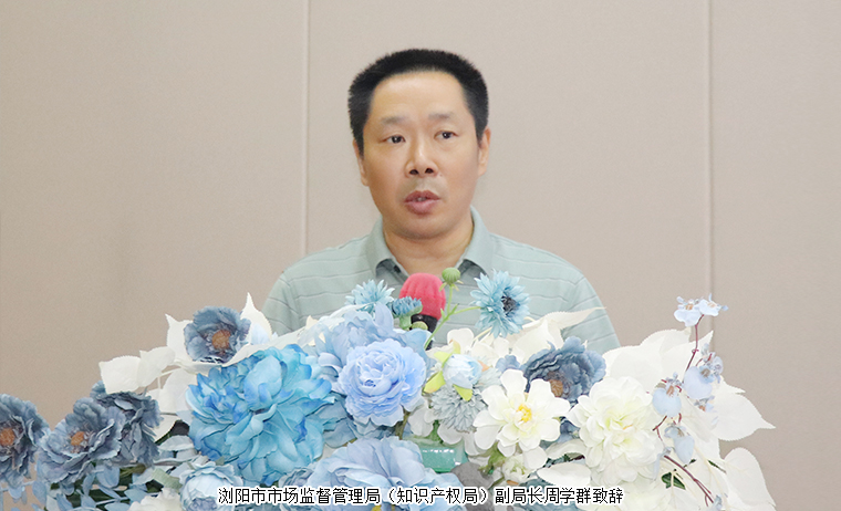 活動(dòng)開(kāi)始前,到訪嘉賓一行參觀了綠之韻集團(tuán)國(guó)際會(huì)議中心展廳。勞嘉總裁就集團(tuán)的發(fā)展歷程、非公黨建、技術(shù)創(chuàng)新、產(chǎn)品生產(chǎn)、知識(shí)產(chǎn)權(quán)、公益慈善等方面的工作情況作了詳細(xì)介紹?;顒?dòng)伊始,瀏陽(yáng)市市場(chǎng)監(jiān)督管理局(知識(shí)產(chǎn)權(quán)局)副局長(zhǎng)周學(xué)群致辭。他表示,在這個(gè)各行各業(yè)急需恢復(fù)生產(chǎn)動(dòng)力和創(chuàng)新活力的關(guān)鍵時(shí)期,感謝各位領(lǐng)導(dǎo)及協(xié)會(huì)專家們來(lái)瀏陽(yáng)指導(dǎo)知識(shí)產(chǎn)權(quán)工作,感謝大家對(duì)瀏陽(yáng)企業(yè)的關(guān)心關(guān)愛(ài)。瀏陽(yáng)作為湖南重要的縣級(jí)市,在市局的關(guān)心支持下,全面落實(shí)了三高四新的戰(zhàn)略定位和歷史使命,大力實(shí)施了強(qiáng)省會(huì)的戰(zhàn)略,知識(shí)產(chǎn)權(quán)工作取得了一定的成效。未來(lái)將繼續(xù)加強(qiáng)重點(diǎn)商標(biāo)品牌的培育,大力引導(dǎo)企業(yè)增強(qiáng)品牌意識(shí),加大宣傳的舉措,擦亮瀏陽(yáng)品牌這塊牌子。