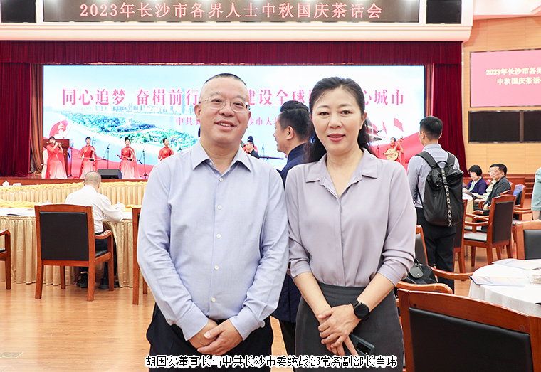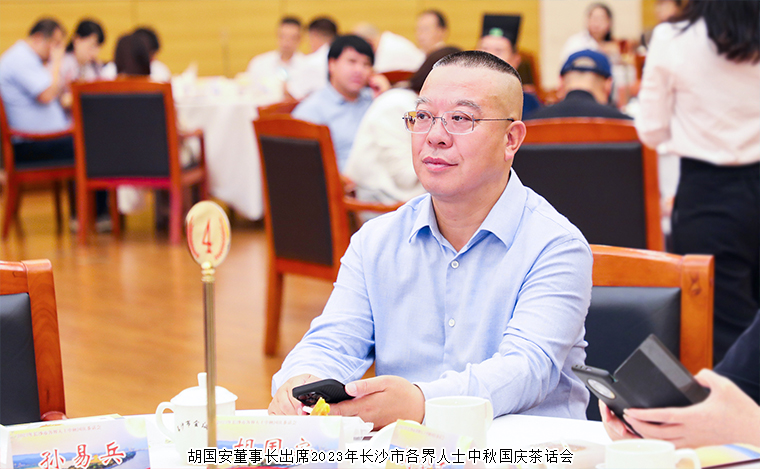 2023年9月28日,長(zhǎng)沙市舉行中秋國(guó)慶茶話會(huì)。湖南省人民政府副省長(zhǎng)、中共長(zhǎng)沙市委副書(shū)記、市長(zhǎng)周海兵出席活動(dòng)。譚勇、文樹(shù)勛、陳剛、彭華松、陳剛(紀(jì)委)、劉匯、鄒特、汪立生、張賢遵、簡(jiǎn)用超、姚五零等市領(lǐng)導(dǎo)和老同志出席。長(zhǎng)沙市人大代表、中國(guó)國(guó)際商會(huì)湖南商會(huì)副會(huì)長(zhǎng)、香港長(zhǎng)沙聯(lián)誼會(huì)會(huì)長(zhǎng)、綠之韻集團(tuán)董事長(zhǎng)胡國(guó)安與全市各界人士代表歡聚一堂,共賀佳節(jié),共敘情誼,共話發(fā)展。