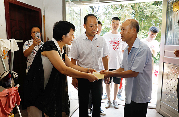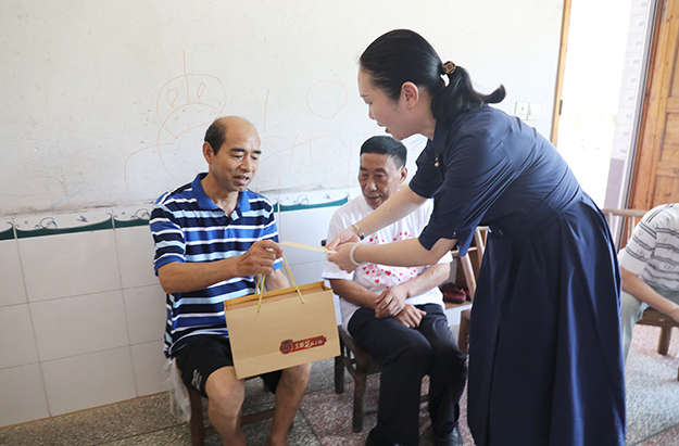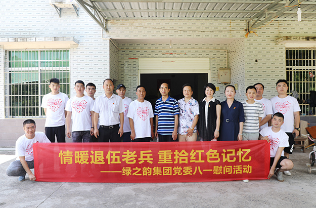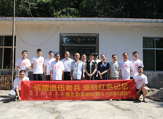 2019年7月31日,綠之韻集團(tuán)黨委開展了“八一”走訪慰問退伍老兵活動(dòng)。綠之韻集團(tuán)黨委書記劉云、副總經(jīng)理夏運(yùn)良、工會(huì)主席兼集團(tuán)辦公室行政總監(jiān)馮紅、黨委副書記許達(dá)仲帶領(lǐng)著就職于集團(tuán)的十余名退伍軍人前往洞陽鎮(zhèn)東園村,向退伍老兵送上慰問金和濃濃的節(jié)日祝福。