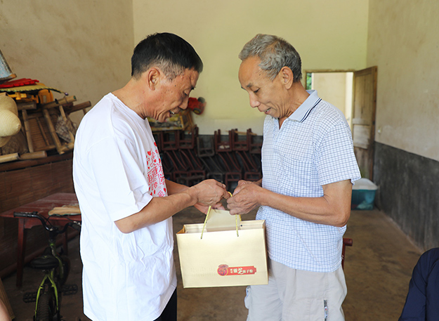 來到位于洞陽鎮(zhèn)東園村的老兵家中,劉云書記一行與老兵們親切交談,詳細(xì)了解他們的生活、身體狀況,聆聽他們回憶入伍時(shí)的崢嶸歲月,向他們致以節(jié)日的祝福和崇高的敬意,對他們?yōu)閲医?jīng)濟(jì)、社會(huì)發(fā)展和地方建設(shè)作出的巨大貢獻(xiàn)表示誠摯感謝。綠之韻集團(tuán)工會(huì)主席兼集團(tuán)辦公室行政總監(jiān)馮紅、黨委副書記許達(dá)仲向老兵們送上慰問金、營養(yǎng)品和日用品。