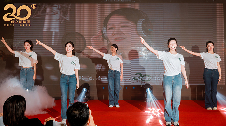 隨后,一段綠之韻集團20周年紀念曲《愿世間所有的美好如約而至》現(xiàn)代舞表演為晚宴帶來難忘瞬間,綠之韻舞蹈演員穿著有民族特色的服飾,以現(xiàn)代舞穿插手語舞的形式,展現(xiàn)了紀念曲的優(yōu)美韻律和柔美風情。悠揚的歌聲,飽含深情的歌詞,將無懼歲月,把握當下,勇敢追逐夢想的綠之韻精神娓娓道來,同時也唱出了所有綠之韻人堅持活出真我,做更好自己的初心。