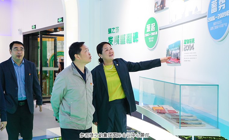 領(lǐng)導(dǎo)一行先后參觀了綠之韻集團(tuán)國際會議中心展廳、黨建文化教育基地,與勞嘉總裁圍繞綠之韻集團(tuán)的市場布局、產(chǎn)品研發(fā)生產(chǎn)、文化品牌建設(shè)、公益慈善活動及非公黨建工作等開展情況展開深入交流。領(lǐng)導(dǎo)一行肯定了綠之韻集團(tuán)積極履行社會責(zé)任和嚴(yán)格把關(guān)產(chǎn)品生產(chǎn)等工作方面取得的顯著成效,對綠之韻非公黨建工作的開展給與高度評價。