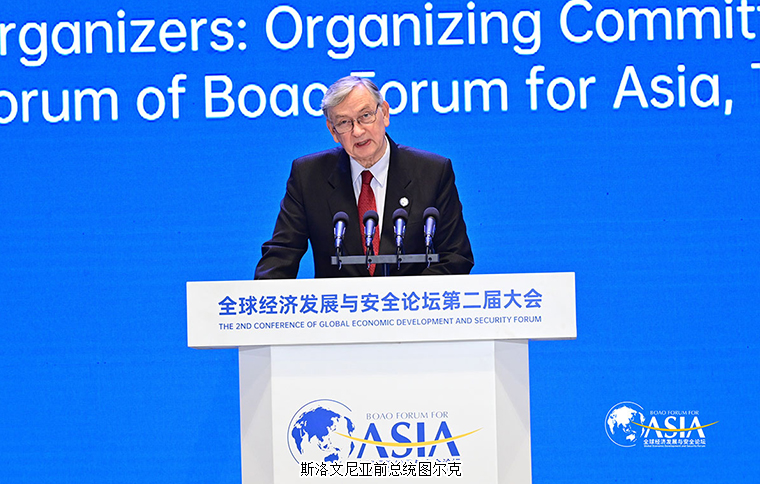 2023年10月30日,博鰲亞洲論壇全球經(jīng)濟發(fā)展與安全論壇第二屆大會在長沙國際會議中心舉行開幕大會。第十四屆全國人大常委會副委員長鄭建邦代表中國政府在開幕大會上致辭。博鰲亞洲論壇理事長潘基文,大會榮譽主席、斯洛文尼亞前總統(tǒng)圖爾克,論壇副理事長周小川,第十三屆全國政協(xié)副主席辜勝阻,湖南省委副書記李殿勛,斯里蘭卡議會國家安全監(jiān)督委員會主席維拉塞克拉,新西蘭前總理希普利,湖南省委常委、長沙市委書記吳桂英,香港特首李家超(視頻),中日韓合作秘書處秘書長李熙燮,論壇戰(zhàn)略合作伙伴委員會主席、福瑞斯特集團創(chuàng)始人、執(zhí)行董事長福瑞斯特,論壇機構(gòu)理事、榮譽戰(zhàn)略合作伙伴沙特基礎(chǔ)工業(yè)公司(SABIC)副總裁兼國際化學品制造協(xié)會主席李雷等中外嘉賓也在開幕大會上致辭。開幕大會由博鰲亞洲論壇秘書長李保東和大會主席曾偉雄主持。