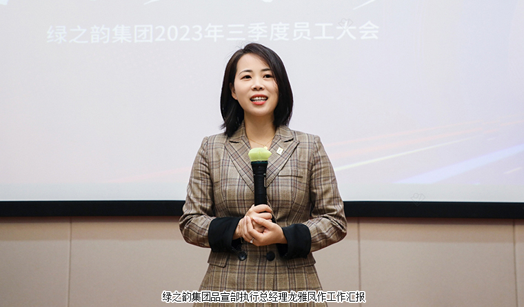 會上,全體員工通過視頻回顧了第三個季度的重要工作成果,一起見證綠之韻實(shí)力和影響力的大幅提升。綠之韻集團(tuán)市場營銷中心總經(jīng)理戴三省、常務(wù)副總經(jīng)理梅其慧、品宣部執(zhí)行總經(jīng)理龍雅鳳分別作前三季度市場運(yùn)營情況和下一步工作計(jì)劃的報告,全面梳理了市場前三個季度的各項(xiàng)工作,理清思路、總結(jié)經(jīng)驗(yàn),為下個季度的沖刺明確思路和方向。