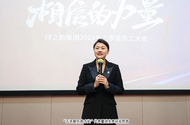在全場熱烈的掌聲和萬眾矚目中,綠之韻集團(tuán)胡國安董事長發(fā)表重要講話。他再次對全體員工的努力和付出表示肯定,對第三季度所有獲獎員工致以衷心祝賀,并對獲獎員工給予期許,希望大家能發(fā)揮才干,為公司向前發(fā)展提供動力。他表示,綠之韻成立二十年,經(jīng)歷無數(shù)艱辛曲折,收獲了質(zhì)的飛躍與發(fā)展。20歲的綠之韻擁有積極向上、創(chuàng)新求變的精神力量,希望大家繼續(xù)發(fā)揚(yáng)綠之韻精神,堅(jiān)持為用戶提供有價值的產(chǎn)品和服務(wù)不改變;為員工提供收獲成長的價值不改變;為社會合作伙伴創(chuàng)造價值不改變。他提出了三點(diǎn)寄望,一是希望所有綠之韻人可以躬身入局、親力親為;二是成為真正為公司解決問題的人;三是希望所有人都有降本增效、化繁為簡的能力,可以對結(jié)果負(fù)責(zé)。未來,期待所有綠之韻人永懷感恩之心,積極參與公司發(fā)展建設(shè),同頻共振、同舟共濟(jì)、共同成長。相信在綠之韻這棵大樹之下,所有的福氣都會如綠蔭,庇護(hù)著所有綠之韻人,讓綠之韻蓬勃健康發(fā)展,我們現(xiàn)在唯一要做的就是最好的自己,所有一切美好必將如約而至!