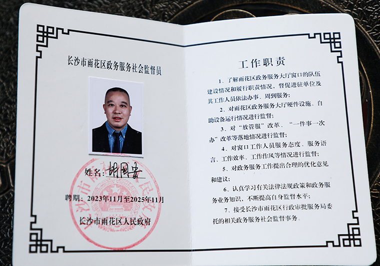 監(jiān)督工作是規(guī)范政務(wù)服務(wù)工作的“度量尺”,是監(jiān)督營商環(huán)境的“探照燈”,是密切干群關(guān)系的“連心橋”。胡國安董事長表示,此次受聘為長沙市雨花區(qū)政務(wù)環(huán)境行風(fēng)監(jiān)督員,是雨花區(qū)政府一直以來優(yōu)化營商環(huán)境、打造親切政企關(guān)系的體現(xiàn),能夠擔(dān)任政務(wù)監(jiān)督員是一種榮譽(yù),更是一份責(zé)任,今后不僅要積極建言獻(xiàn)策,及時(shí)收集和反映企情民意,也會積極參與雨花區(qū)政務(wù)服務(wù)改革和政策宣傳解讀,成為密切干群關(guān)系的橋梁和紐帶,將以高度的責(zé)任感和使命感,認(rèn)真履行職責(zé),發(fā)揮自身特長和優(yōu)勢,把握新動向、洞察新問題,同心協(xié)力為長沙市雨花區(qū)高質(zhì)量發(fā)展作出積極貢獻(xiàn)。