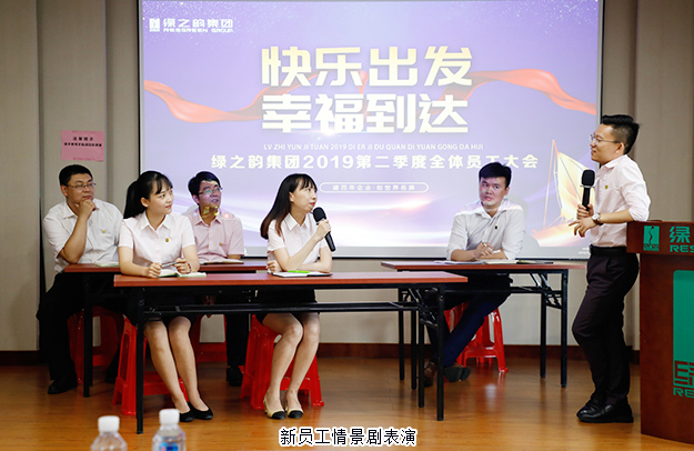 會議在全體員工宣讀《綠之韻工作宣言》的誦讀聲中拉開序幕。會上,上半年新入職的員工上臺做自我介紹,并獻上精心準(zhǔn)備的節(jié)目表演。他們作為新鮮血液,進一步增強了公司的人才體系和創(chuàng)新能力。隨后,主持人以“快樂出發(fā) 幸福到達”為主題,回顧了2019年上半年公司重大活動,全體員工的內(nèi)心獲得了再創(chuàng)輝煌的無限力量。