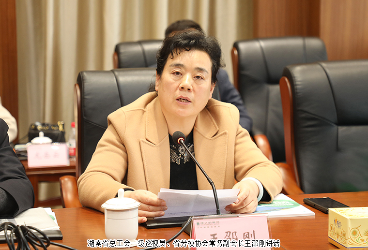 湖南省總工會一級巡視員、省勞模協(xié)會常務(wù)副會長王邵剛講話。她表示,習(xí)近平總書記在2020年全國勞動模范和先進工作者表彰大會上指出,“勞動模范是民族的精英、人民的楷模,是共和國的功臣。我國是人民當(dāng)家作主的社會主義國家,黨和國家始終堅持全心全意依靠工人階級方針,始終高度重視工人階級和廣大勞動群眾在黨和國家事業(yè)發(fā)展中的重要地位,始終高度重視發(fā)揮勞動模范和先進工作者的重要作用。”勞模一直在提升行業(yè)的形象方面發(fā)揮著重要作用,我們要加強勞模的聯(lián)系,勾起一張橫向到面、縱向到底的網(wǎng)絡(luò),增強勞模之間的交流與溝通;要做好勞模的宣傳工作,宣傳勞模工作敬業(yè)、無私奉獻的精神和勞模的技能;要發(fā)揮勞模本身的榜樣力量,引領(lǐng)更多的人在工作中追求卓越,不斷超越自己;要落實勞模待遇,為勞模辦實事、做好事、解難事,將組織的溫暖關(guān)懷落到實處;要大力弘揚工匠精神,當(dāng)好促進經(jīng)濟社會發(fā)展的主力軍,讓勞動光榮、創(chuàng)造偉大成為鏗鏘的時代強音,讓勞動崇高、勞動美麗在全社會蔚然成風(fēng)。