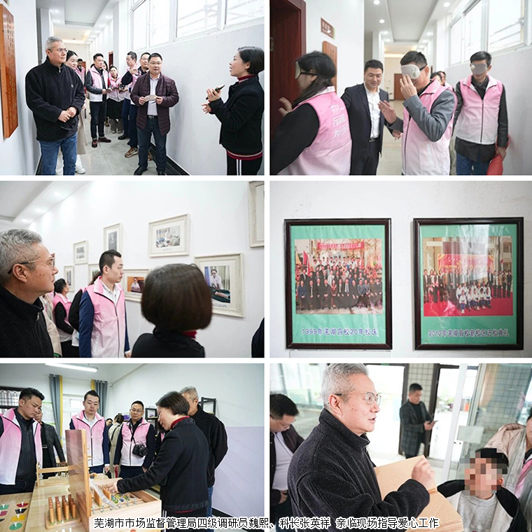2023年12月10日,蕪湖市市場監(jiān)督管理局四級調(diào)研員魏熙、科長張英祥,綠之韻集團安徽分公司經(jīng)理趙軍,綠之韻碧波庭傳承委唐軍陳琪伉儷、田小強武宗華伉儷,水蓮花志愿者劉春香、邵賢剛楊云聰伉儷,以及當(dāng)當(dāng)老師、阿倫老師一同前往蕪湖盲校開展愛心公益捐助,為盲校藝術(shù)團捐贈樂器,送去溫暖和愛心,共同陪伴孩子們度過美好時光。