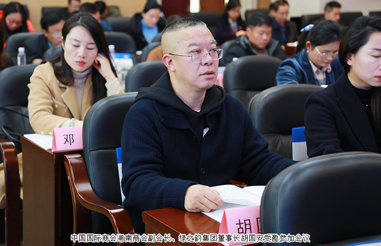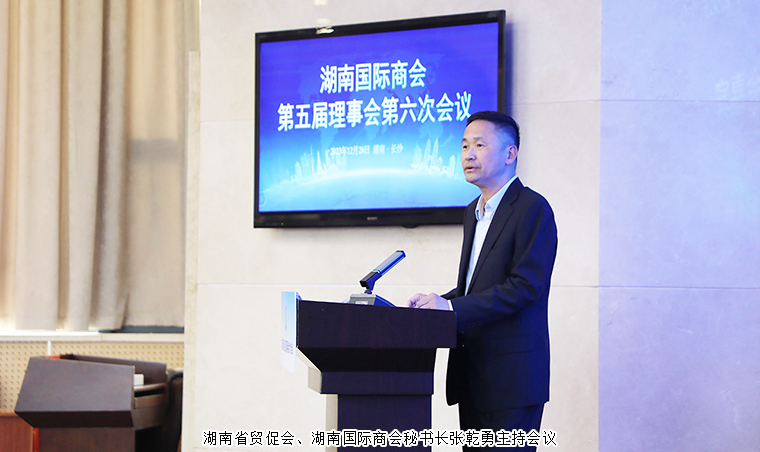 2023年12月28日,湖南國際商會第五屆理事會第六次會議在長沙召開。大會播放了習近平主席在慶祝中國國際貿易促進委員會建會70周年大會暨全球貿易投資促進峰會上的致辭視頻,審議了湖南國際商會2023年工作報告等多項事宜。湖南省貿促會黨組副書記、副會長吳曙光,湖南省貿促會黨組成員、副會長傅丹舟、鄧羅興及省貿促會一級巡視員余炳銳等領導出席會議。湖南省貿促會、湖南國際商會秘書長張乾勇主持會議。中國國際商會湖南商會副會長、湖南省慈善總會副會長、綠之韻集團董事長胡國安受邀參加會議。