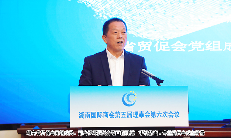 與會成員及單位就湖南國際商會增補會員單位名單、會長候選人情況、第六屆會員代表大會議程、會員代表產生辦法、成立換屆選舉委員會、理事(單位)名單,相關財務管理制度等事宜進行了審議。會上,還舉辦了湖南國際商會工程機械二手設備出口專業(yè)委員會、跨境貿易專業(yè)委員會成立揭牌儀式。湖南省貿促會黨組成員、副會長,湖南國際商會副會長鄧羅興介紹工程機械二手設備出口專業(yè)委員會成立背景、工作內容等情況。