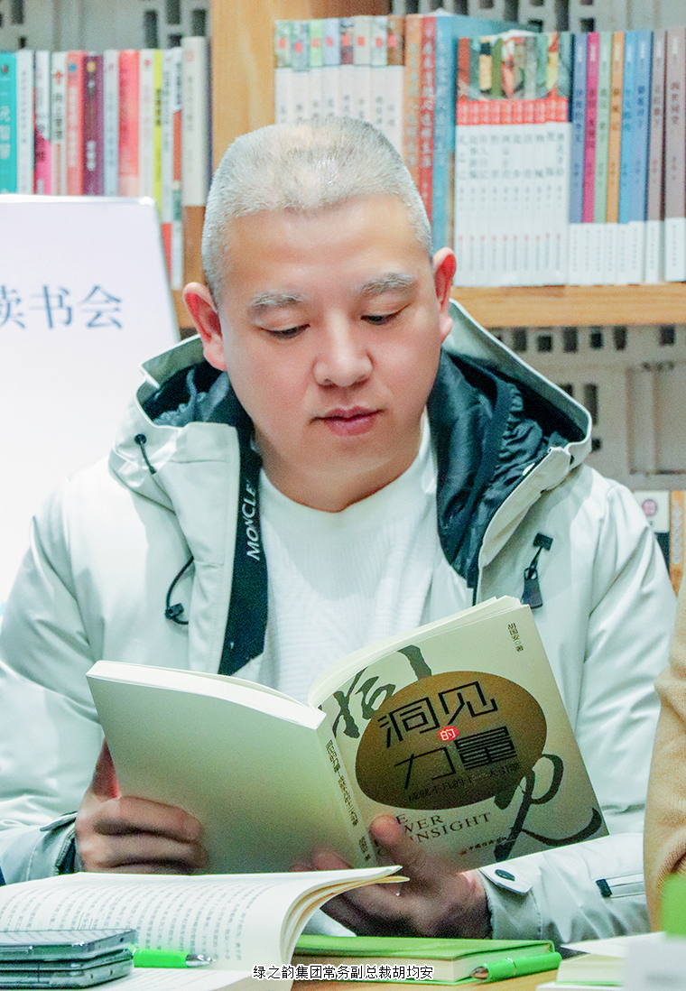 辭舊迎新,共話未來;書香致遠,悅讀新年。為進一步統(tǒng)一思想、凝聚共識,扎扎實實推進學(xué)習(xí)型企業(yè)縱深發(fā)展,2024年2月2日,致公·綠韻書屋舉行了一場別開生面的讀書分享會。綠之韻集團董事長胡國安、總裁勞嘉、常務(wù)副總裁胡均安、市場營銷中心總經(jīng)理戴三省、總裁助理蔣文、市場營銷中心業(yè)務(wù)總經(jīng)理趙蕾,綠之韻集團戰(zhàn)略委委員呂秀玲、易園翔、彭銘、范林,綠之韻集團策略委委員黃翔、孫彩虹,綠之韻下屬公司管理團隊龍贊、宋貴、高尚、張浩哲、馬郡成、趙建銘等領(lǐng)導(dǎo)參加了讀書會活動。