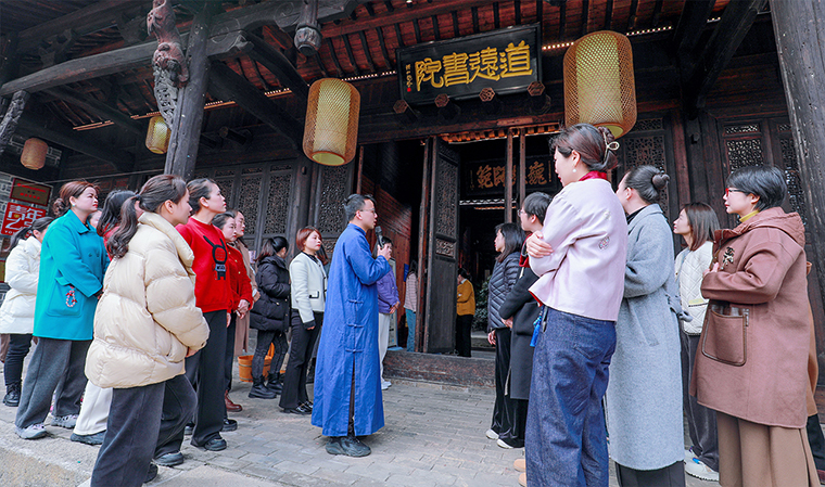 任重道遠,道不遠人。道遠書院是從江西高安按照一比一比例搬遷過來修繕的嘉慶年間的古宅,歷史悠久,古色古香,底蘊蔚然。在老師的講解下,綠之韻的女神們一同進入匠心園,重溫孔氏家訓,領悟中華文化,感受儒家文化氛圍,在經(jīng)典國學中洗禮身心感受愉悅,提升自我。通過實地參觀及詳細解說,全體女員工對儒家文化有了更全面的認識和了解。隨后,大家走進道遠書院,學習并完成了傳統(tǒng)禮儀“盥手禮”和“拜孔禮”?!疤斓厣n蒼,乾坤茫茫,紅日初升,其道大光......”在領隊老師的誦讀中,大家端身立正,扶手高揖,以至誠、感恩、恭敬之心向大成至圣先師孔老夫子行四鞠躬禮,沉浸式感受和學習了中國優(yōu)秀傳統(tǒng)文化。在幽靜禪意的院落中,綠之韻的女神們穿越時空,問道先賢,與心靈對話,感受這份內(nèi)心的崇敬與澄澈。