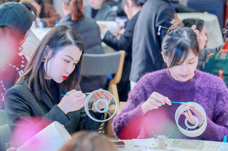 裊裊清姿藏蕙質(zhì),錚錚傲骨蘊巧心。我國作為具有五千多年歷史的文明古國,每一個傳統(tǒng)手工藝都是中華文化的瑰寶,值得我們?nèi)鞒泻捅Wo。在手工制作活動中,綠之韻的女神們踴躍參與,在專業(yè)老師的示范指導下,大家興致盎然,邊學邊做,展現(xiàn)了精工巧手,體驗了壓花、湘繡和纏花技藝,制作了古風發(fā)簪、刺繡掛件和壓花臺燈等傳統(tǒng)古風手工藝品,一件件清雅別致的作品讓人賞心悅目。完成制作后,大家相互展示欣賞,并進行了拍照留念,記錄下這美好瞬間,在感受美、欣賞美、創(chuàng)造美的過程中獲得了滿滿的儀式感和成就感。