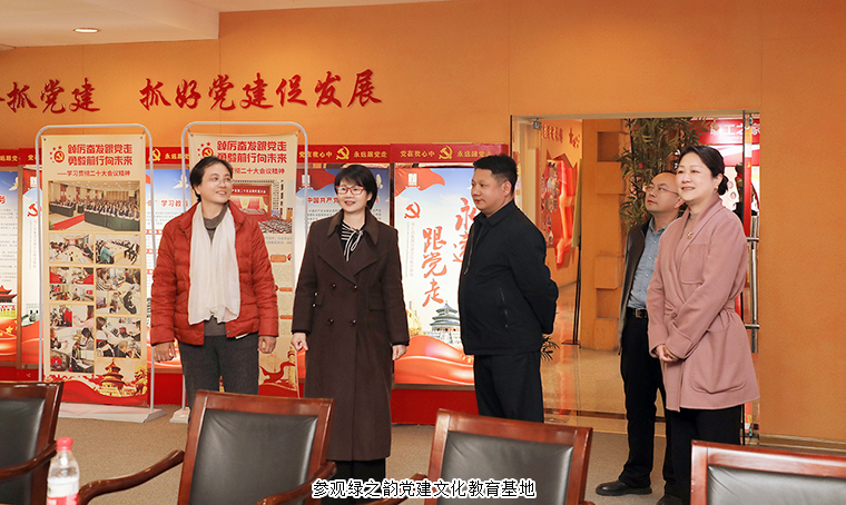 為貫徹落實中心黨總支關(guān)于“一月一課一片一實踐”支部主題黨日活動的工作部署,強化黨員黨性修養(yǎng),堅定理想信念,2024年3月8日,中共湖南省委統(tǒng)戰(zhàn)部干部處、機關(guān)黨委支部與綠之韻集團聯(lián)合開展主題黨日活動。中共湖南省委統(tǒng)戰(zhàn)部干部處處長鄧紅梅、湖南省委統(tǒng)戰(zhàn)部機關(guān)黨委常務(wù)副書記湯國旺、中央統(tǒng)戰(zhàn)部在湘掛職領(lǐng)導(dǎo)、瀏陽市委統(tǒng)戰(zhàn)部副部長焦清平等領(lǐng)導(dǎo)帶領(lǐng)黨員代表一行參加活動。湖南省政協(xié)委員、綠之韻集團總裁勞嘉,黨委書記劉云,綠之韻國際大酒店黨支部書記、常務(wù)副總裁胡均安,黨委副書記許達(dá)仲、工會主席馮紅等領(lǐng)導(dǎo)陪同。