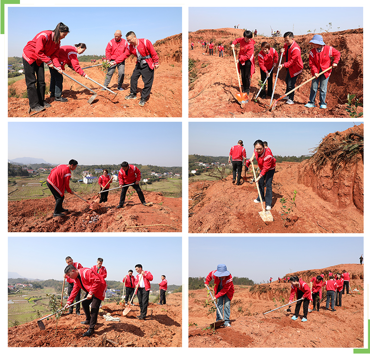 春風(fēng)吐綠、草木初萌。到達(dá)洞陽鎮(zhèn)義務(wù)植樹基地后,林業(yè)站易申海站長(zhǎng)為大家講解了種植的步驟和要點(diǎn),綠之韻的黨員同志們?cè)趯W(xué)習(xí)了種樹的相關(guān)知識(shí)后,斗志昂揚(yáng),擼起袖子,以飽滿的狀態(tài)、實(shí)干的精神投入到植樹活動(dòng)中,揮鍬鏟土、扶苗培土,有條不紊完成每道工序,齊心協(xié)力栽種下一棵棵樹苗,確保栽一棵活一棵,植一片綠一方。綠之韻國(guó)際大酒店黨支部書記胡均安現(xiàn)場(chǎng)指導(dǎo)大家栽種技巧和方法,并表示,這不僅是一次植樹造林的黨日活動(dòng),更是一次綠色發(fā)展的宣傳教育。通過開展植樹節(jié)主題黨日活動(dòng),綠之韻的黨員同志們充分展現(xiàn)了勇?lián)厝蔚南蠕h模范作用,發(fā)揮了共產(chǎn)黨員的團(tuán)隊(duì)合作精神,以實(shí)際行動(dòng)爭(zhēng)當(dāng)新時(shí)代“綠水青山就是金山銀山”理念的傳播者和踐行者,共同為建設(shè)美麗瀏陽增綠添彩。