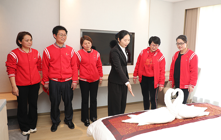 植樹活動(dòng)結(jié)束后,大家來到了綠之韻國(guó)際大酒店,在服務(wù)人員的講解下,對(duì)消防安全設(shè)施、功能布局、配套設(shè)施、文化植入、裝修用材進(jìn)行詳細(xì)了解,對(duì)主樓的大廳、廊道、商務(wù)中心、客房房間布局、房型配比等進(jìn)行了實(shí)地參觀。這是綠之韻國(guó)際大酒店提質(zhì)改造后接待的首次主題黨日活動(dòng)參觀,方便的設(shè)施、周到的服務(wù),讓在場(chǎng)的黨員同志紛紛點(diǎn)贊。綠之韻國(guó)際大酒店于2005年由綠之韻集團(tuán)投資建成,是一家集商務(wù)、會(huì)議、度假于一體的現(xiàn)代綜合型酒店。酒店設(shè)有總統(tǒng)套房、各類型客房及溫馨公寓共203間,同時(shí)配套中餐廳、多功能國(guó)際宴會(huì)廳,商務(wù)中心、精品商店等服務(wù)。酒店以先進(jìn)齊全的設(shè)施,綠色環(huán)保的環(huán)境,“家”的服務(wù)理念,為全球來到綠之韻總部的家人提供貼心和溫暖的服務(wù),滿足消費(fèi)者的多元化需求。
