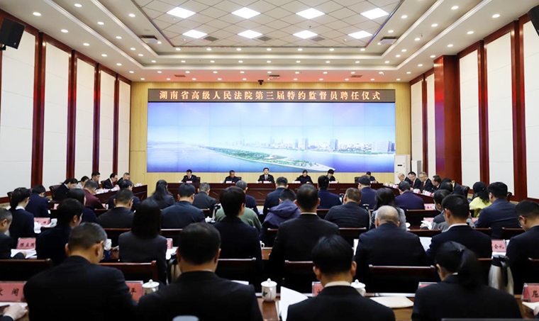 2024年3月21日,湖南省高級(jí)人民法院舉行第三屆特約監(jiān)督員聘任儀式。湖南省高級(jí)人民法院黨組書記、院長朱玉出席會(huì)議并講話,為特約監(jiān)督員代表頒發(fā)聘書。湖南省高級(jí)人民法院黨組副書記、副院長鄔文生主持會(huì)議。中共湖南省委統(tǒng)戰(zhàn)部副部長廖建華出席會(huì)議并講話。中共湖南省委政法委二級(jí)巡視員羅壽初,省人大監(jiān)察和司法委員會(huì)副主任委員段成鋼,省政協(xié)社會(huì)和法制委員會(huì)駐會(huì)副主任楊天兵出席會(huì)議。湖南省高級(jí)人民法院黨組成員、政治部主任李知文宣讀聘任決定。湖南省政協(xié)委員、綠之韻集團(tuán)總裁勞嘉等40名同志被聘為湖南省高級(jí)人民法院第三屆特約監(jiān)督員。