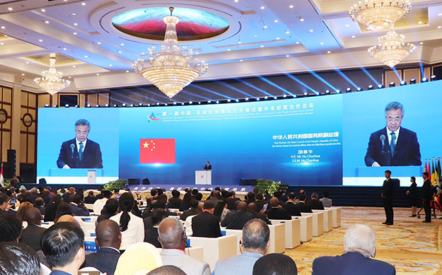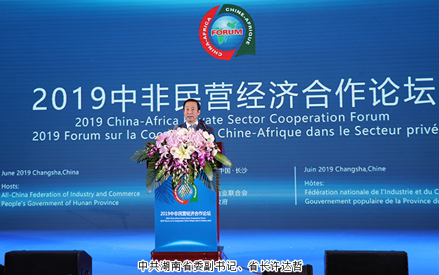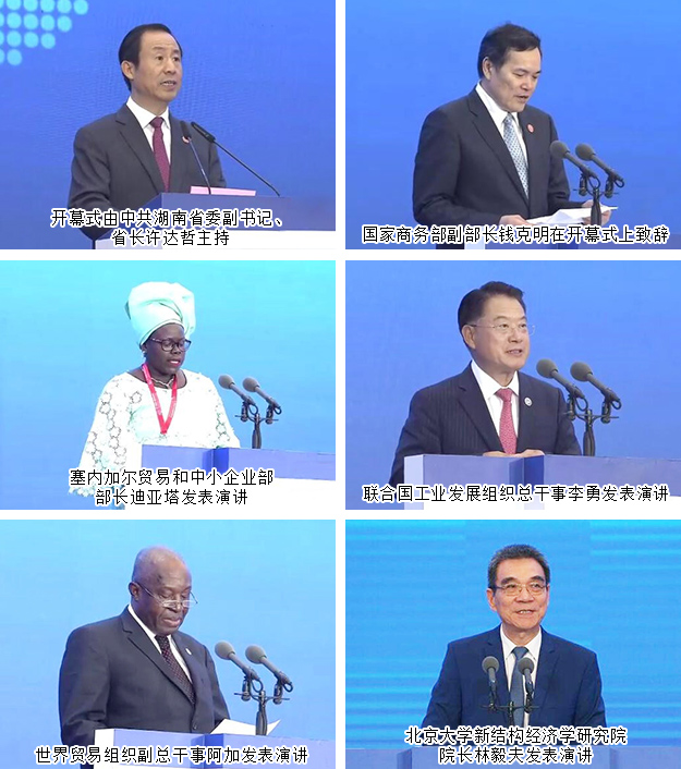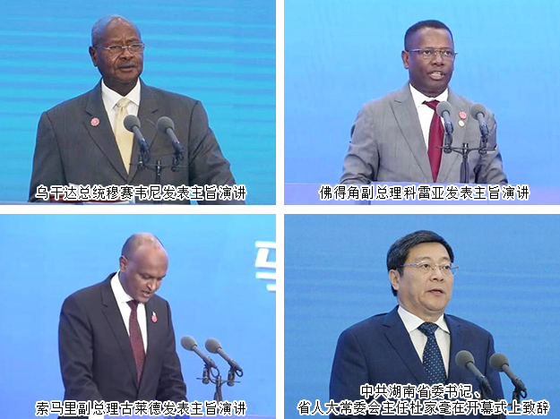 2019年6月27日,首屆中國—非洲經(jīng)貿(mào)博覽會在湖南長沙開幕。開幕式上,中共中央政治局委員、國務(wù)院副總理胡春華宣讀習(xí)近平主席的賀信,發(fā)表主旨演講,并宣布第一屆中國—非洲經(jīng)貿(mào)博覽會開幕。烏干達(dá)總統(tǒng)穆塞韋尼、佛得角副總理科雷亞、索馬里副總理古萊德出席開幕式并發(fā)表主旨演講。中共湖南省委書記、省人大常委會主任杜家毫致辭,中共湖南省委副書記、省長許達(dá)哲主持開幕式。國家商務(wù)部副部長錢克明致辭。塞內(nèi)加爾貿(mào)易和中小企業(yè)部部長迪亞塔、聯(lián)合國工業(yè)發(fā)展組織總干事李勇、世界貿(mào)易組織副總干事阿加、北京大學(xué)新結(jié)構(gòu)經(jīng)濟(jì)學(xué)研究院院長林毅夫先后發(fā)表演講。