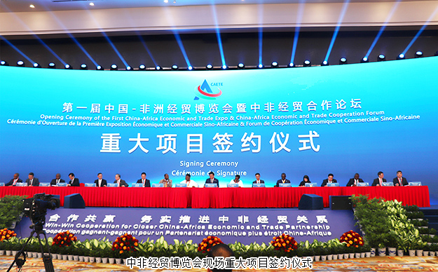 開幕式后,此次博覽會還舉行了重大項(xiàng)目簽約儀式,現(xiàn)場簽署項(xiàng)目13個(gè),涉及8個(gè)非洲國家,總金額超過25億美元。