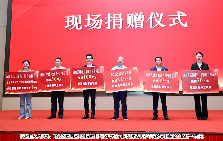 大會舉行了現(xiàn)場捐贈儀式。安化縣人大代表、綠之韻集團(tuán)常務(wù)副總裁胡均安代表公司向湖南省長沙市光彩事業(yè)基金會捐贈210萬元用于開展光彩事業(yè)公益項(xiàng)目。大會還邀請財(cái)會專家作基金會公益政策宣講、愛心企業(yè)家代表作分享發(fā)言。