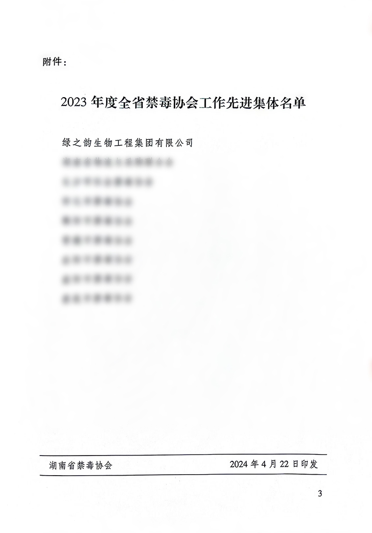 禁絕毒品,人人有責,功在當代,利在千秋。綠之韻集團黨委書記劉云在工作交流時表示,此次榮獲“2023年度湖南省禁毒協(xié)會工作先進集體”,既是一種榮譽,更是一種責任與使命。綠之韻集團作為湖南省禁毒協(xié)會第四屆理事會副會長單位,將充分發(fā)揮主人翁作用,在樹立企業(yè)自身良好形象的同時,積極引導(dǎo)廣大人民群眾自覺提高禁毒、防毒、拒毒的意識,不遺余力地參與省禁毒協(xié)會的各項宣傳工作,為加快建設(shè)法治湖南、平安湖南,為國家富強、民族振興、人民幸福奉獻自己的力量。
