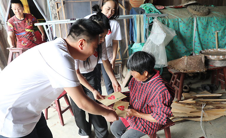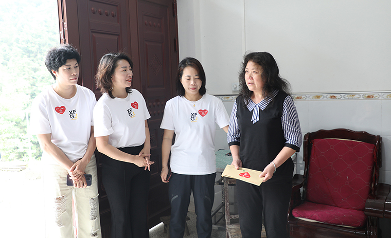 慰問組一行向大山里開了很長(zhǎng)的路,又下車步行了很久,爬過一個(gè)小山坡才來到含海的家里。家里只有他的妻子菊姐在。今年3月,菊姐被檢查出患有肺部腫瘤,安化縣里醫(yī)療條件有限,他們只能租車前往省會(huì)城市長(zhǎng)沙就醫(yī)。前段時(shí)間,菊姐剛在湘雅醫(yī)院做了手術(shù),花費(fèi)了10多萬(wàn),現(xiàn)在正處于術(shù)后恢復(fù)期,需要定期復(fù)查和長(zhǎng)期吃藥。面對(duì)慰問組一行,菊姐紅了眼,唯一的女兒遠(yuǎn)嫁,丈夫含海為了籌措醫(yī)藥費(fèi)只能出去打點(diǎn)零工,平常都是隔壁鄰居稍微照應(yīng)下她,“我現(xiàn)在什么都做不了,連為你們泡杯熱茶我都做不到……”夏總握住她的手,親切囑咐她要放松心情,保持樂觀心態(tài),積極面對(duì)生活。