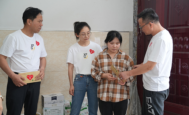 家里地方小,穩(wěn)軍見到慰問組一行熱情招呼拿椅子,讓大家坐下喝口茶。他文化水平不高,找工作比較困難,原來跑車做運(yùn)輸,但是疫情這幾年生意不好,只能偶爾跑一下網(wǎng)約車。家里有兩個(gè)孩子,再加上70多歲的老母親有很多基礎(chǔ)病,妻子也只能在家里照顧好一家老小。穩(wěn)軍在村里是為數(shù)不多家里還住木板屋的困難戶,大女兒去年剛考上大學(xué),很多人都勸他,別讓孩子考大學(xué)了,不如去上班,還能貼補(bǔ)家用,早點(diǎn)建房子。穩(wěn)軍心里難受,自己吃了沒文化的苦,我的孩子只要能讀會(huì)讀,想盡辦法也要供他們讀完書。穩(wěn)軍的老母親握著胡國(guó)安董事長(zhǎng)的手,不住地表達(dá)感謝,感謝胡總、夏總的幫助一解家里的燃眉之急。胡國(guó)安董事長(zhǎng)讓穩(wěn)軍媽媽放寬心,只要孩子能學(xué)會(huì)學(xué),我們總會(huì)讓孩子有書讀。