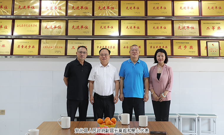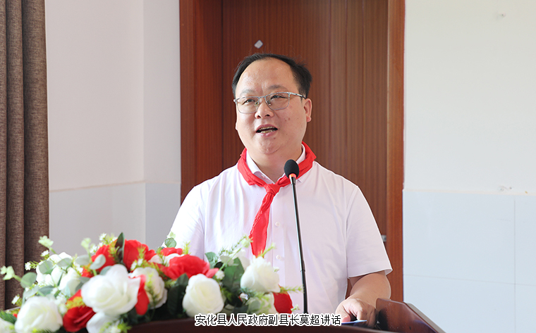 活動(dòng)最后,安化縣人民政府黨組成員、副縣長莫超講話。他首先代表安化縣委、縣政府向胡國安董事長情系家鄉(xiāng)、造福桑梓的善行義舉給予了高度贊揚(yáng)。他表示,胡國安董事長及團(tuán)隊(duì)始終在回報(bào)桑梓、捐資助學(xué)上不遺余力,詮釋了企業(yè)家應(yīng)有的責(zé)任和擔(dān)當(dāng)。他提出了3個(gè)關(guān)鍵詞,一是感恩,“綠葉不會(huì)忘記根的情”。希望學(xué)生們常懷感恩之心,勿忘父母師長,牢記愛心企業(yè)、社會(huì)國家的教育和幫助,關(guān)注公益事業(yè),以優(yōu)異的成績和實(shí)際行動(dòng)去回饋社會(huì)、感恩社會(huì)。二是驕傲,獎(jiǎng)教獎(jiǎng)學(xué)金的發(fā)放,是對(duì)每一位老師和學(xué)生成績和付出的肯定,我們要始終保持積極、樂觀的態(tài)度去走好每一步人生路,用辛勤努力去改變自己的命運(yùn)。三是奮斗,希望所有的同學(xué)們都能以胡國安董事長這樣的優(yōu)秀的鄉(xiāng)賢為榜樣,爭做“有志向、有夢(mèng)想,愛學(xué)習(xí)、愛勞動(dòng),懂感恩、懂友善,敢創(chuàng)新、敢奮斗,德智體美勞全面發(fā)展的好少年”!