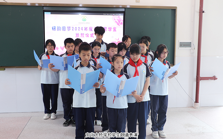 為營造濃厚的關(guān)心人才、尊重人才、支持人才以及愛學(xué)、勤學(xué)、好學(xué)、比學(xué)的濃厚氛圍,湖南省綠之韻公益基金會(huì)捐贈(zèng)50萬元愛心資金用于在安化大橋?qū)W校設(shè)立“獎(jiǎng)教獎(jiǎng)學(xué)金”,連續(xù)五年每年向?qū)W校捐贈(zèng)10萬元開展獎(jiǎng)學(xué)獎(jiǎng)教活動(dòng),支持鄉(xiāng)村振興文化建設(shè)和教育事業(yè)發(fā)展。2024年5月23日,“綠韻圓夢(mèng)獎(jiǎng)教獎(jiǎng)學(xué)金”發(fā)放儀式活動(dòng)再次走進(jìn)安化大橋?qū)W校。