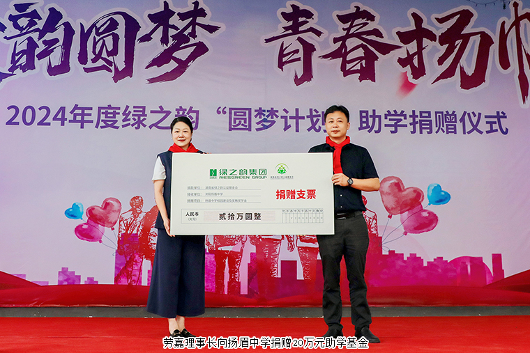 勞嘉理事長(zhǎng)表示,捐資助學(xué)是善舉,興學(xué)育人是美德。教育幫扶一直是綠之韻公益基金會(huì)的重要關(guān)注點(diǎn)之一。綠之韻成立21年來,在胡國(guó)安董事長(zhǎng)的倡導(dǎo)下,始終堅(jiān)持承擔(dān)社會(huì)責(zé)任,堅(jiān)守“讓善行成為生命習(xí)慣 ”的理念,致力于傳遞愛的力量。在綠之韻第五個(gè)五年規(guī)劃發(fā)展時(shí)期,集團(tuán)捐贈(zèng)1000萬設(shè)立“綠韻圓夢(mèng)”愛心基金。此次捐資20萬用于幫助揚(yáng)眉中學(xué)少年宮文化建設(shè)和設(shè)立助學(xué)助教獎(jiǎng)學(xué)金便是我們“綠韻圓夢(mèng)”行動(dòng)重要的實(shí)踐之一。未來,我們還希望影響和帶動(dòng)更多有愛心的人士參與到捐資助學(xué)行動(dòng)中來,幫助青少年健康成長(zhǎng),為瀏陽(yáng)教育事業(yè)高質(zhì)量發(fā)展作出積極貢獻(xiàn)。
