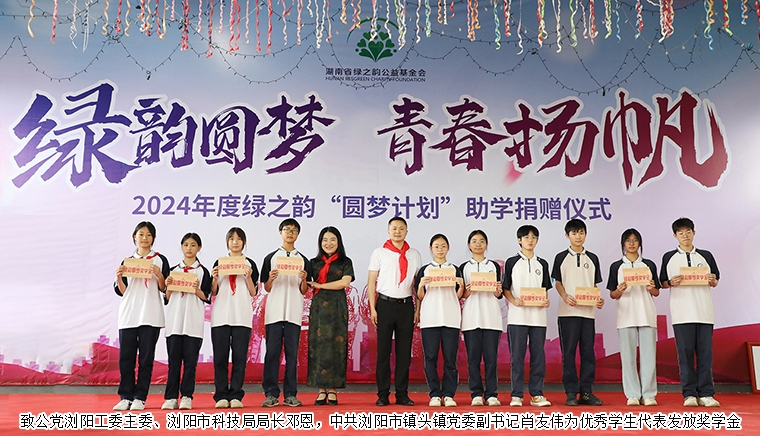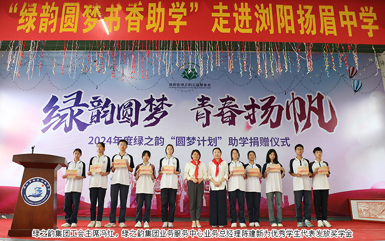 為貫徹落實(shí)習(xí)近平新時(shí)代中國(guó)特色社會(huì)主義思想主題教育,鞏固教育脫貧攻堅(jiān)成果,優(yōu)化教育資源配置,營(yíng)造濃厚的愛學(xué)、勤學(xué)、好學(xué)、比學(xué)氛圍,2024年5月30日,湖南省綠之韻公益基金會(huì)“綠韻圓夢(mèng)行動(dòng)”走進(jìn)瀏陽(yáng)市鎮(zhèn)頭鎮(zhèn)揚(yáng)眉中學(xué),捐贈(zèng)20萬元愛心資金用于少年宮建設(shè)及學(xué)校獎(jiǎng)學(xué)獎(jiǎng)教活動(dòng)。中共瀏陽(yáng)市委統(tǒng)戰(zhàn)部常務(wù)副部長(zhǎng)焦清平,致公黨瀏陽(yáng)工委主委、瀏陽(yáng)市科技局局長(zhǎng)鄧恩,中共瀏陽(yáng)市鎮(zhèn)頭鎮(zhèn)黨委副書記肖友偉,瀏陽(yáng)市鎮(zhèn)頭鎮(zhèn)教育發(fā)展中心黨總支書記、主任陳元林,瀏陽(yáng)市鎮(zhèn)頭鎮(zhèn)揚(yáng)眉中學(xué)黨支部書記、校長(zhǎng)萬錦春,綠之韻集團(tuán)總裁、湖南省綠之韻公益基金會(huì)理事長(zhǎng)勞嘉,綠之韻集團(tuán)黨委書記劉云,綠之韻集團(tuán)工會(huì)主席馮紅,湖南省綠之韻公益基金會(huì)秘書長(zhǎng)蔣文,綠之韻集團(tuán)業(yè)務(wù)服務(wù)中心業(yè)務(wù)總經(jīng)理陳建新等領(lǐng)導(dǎo)嘉賓參加活動(dòng)。