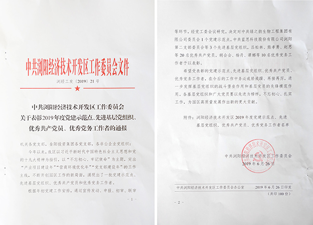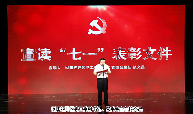 2019年6月27日,瀏陽經開區(qū)黨工委在瀏陽金陽文化藝術中心召開2019年“七一”表彰大會。瀏陽經開區(qū)黨工委書記郭力夫,瀏陽經開區(qū)黨工委副書記、管委會主任談文昌以及全體黨委領導、機關黨員、非公經濟黨組織負責人、優(yōu)秀黨員和2019年度新發(fā)展的預備黨員參加會議。綠之韻集團黨委書記劉云、黨委副書記許達仲帶領集團優(yōu)秀黨務工作者、優(yōu)秀黨員、預備黨員參加會議。