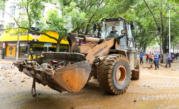 雨停、水退,排澇、清淤,恢復(fù)供電……連日來,平江當(dāng)?shù)卣R心協(xié)力開展災(zāi)后重建,全力以赴救災(zāi)挽損。目前,全縣城區(qū)主干道路積水都已清理,全部恢復(fù)通行,中心城區(qū)還有部分小區(qū)正在抓緊排澇,預(yù)計近日可以恢復(fù)正常。洪水退去,民房、河道邊和田地里留下了沒過膝蓋深的淤泥。當(dāng)?shù)劓?zhèn)村干部、醫(yī)護人員和志愿者等都忙碌在清淤一線,合力一心開展災(zāi)后清理和防疫消殺工作。