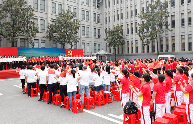 新中國(guó)成立70年來,中國(guó)人民在中國(guó)共產(chǎn)黨領(lǐng)導(dǎo)下浩然前行,書寫了一部感天動(dòng)地的奮斗史詩。70年風(fēng)云激蕩,中華民族迎來了從站起來、富起來到強(qiáng)起來的偉大飛躍,正昂首闊步走在實(shí)現(xiàn)中華民族偉大復(fù)興中國(guó)夢(mèng)的征途上。歷史見證了新中國(guó)的滄桑巨變,亦承載著接續(xù)前行的寶貴經(jīng)驗(yàn)與迎接未來的光明希望。此次活動(dòng)以戶外黨課教育與紅色歌舞相結(jié)合的創(chuàng)新形式,聯(lián)動(dòng)駐地區(qū)域內(nèi)的所有黨建兄弟單位及所轄黨員、群眾,進(jìn)一步接受紅色洗禮,不忘初心跟黨走,追夢(mèng)奮進(jìn)新時(shí)代。