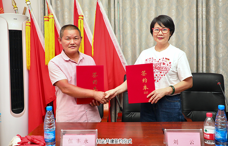 在分別介紹了老屋溪村委和綠之韻集團(tuán)黨委黨組織建設(shè)情況后,老屋溪村村支部書(shū)記伍豐永和綠之韻集團(tuán)黨委書(shū)記劉云現(xiàn)場(chǎng)簽訂村企共建協(xié)議。此次黨組織共建活動(dòng),將充分發(fā)揮結(jié)對(duì)雙方黨組織的自身優(yōu)勢(shì),共同學(xué)習(xí)貫徹落實(shí)黨的二十大精神,增強(qiáng)黨組織服務(wù)群眾功能,形成村企共建責(zé)任共同體,努力構(gòu)建“組織共建、資源共享、優(yōu)勢(shì)互補(bǔ)、互相促進(jìn)、共同提高”的黨建工作新格局,以黨建統(tǒng)籌引領(lǐng)鄉(xiāng)村振興工作進(jìn)一步發(fā)展。