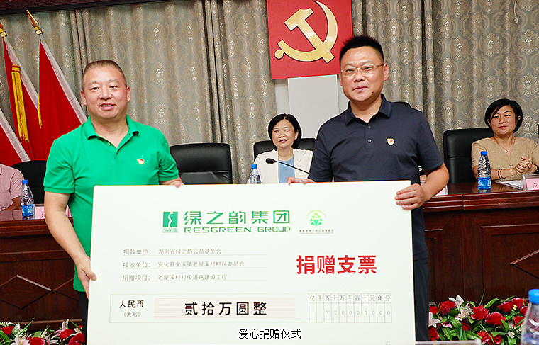 會(huì)上,綠之韻集團(tuán)常務(wù)副總裁、綠之韻公益基金會(huì)副理事長(zhǎng)胡均安代表綠之韻公益基金會(huì)向老屋溪村捐贈(zèng)20萬(wàn)元愛(ài)心款項(xiàng)。胡均安常務(wù)副總裁表示,作為一名安化籍企業(yè)家,同時(shí)也是一名安化縣人大代表,積極投身到建設(shè)家鄉(xiāng)的事業(yè)中去,是他與生俱來(lái)的責(zé)任與使命。多年來(lái),鄉(xiāng)村振興一直是綠之韻公益基金會(huì)的重要關(guān)注點(diǎn)之一,而他也一直最關(guān)心和牽掛家鄉(xiāng)安化的建設(shè)。綠之韻先后在安化投資建設(shè)黃精、杜仲等中藥材種植基地,捐建水電、道路、橋梁、生活廣場(chǎng)等硬件設(shè)施,為老人、婦女進(jìn)行免費(fèi)的兩癌篩查,為學(xué)校捐建校車(chē)、圖書(shū)、體育設(shè)備,為孩子們?cè)O(shè)立獎(jiǎng)教獎(jiǎng)學(xué)金,累計(jì)捐贈(zèng)款物1000多萬(wàn),全方位支持家鄉(xiāng)鄉(xiāng)村振興建設(shè)、文化教育事業(yè)發(fā)展。今年5月20日,綠之韻集團(tuán)在長(zhǎng)沙人文地標(biāo)橘子洲舉行3000人綠跑大型公益品牌活動(dòng),現(xiàn)場(chǎng)捐贈(zèng)100萬(wàn)元愛(ài)心款項(xiàng)至綠韻圓夢(mèng)公益項(xiàng)目。其中,捐贈(zèng)20萬(wàn)用于奎溪鎮(zhèn)老屋溪村村級(jí)道路建設(shè)項(xiàng)目,改善當(dāng)?shù)亟煌顩r,促進(jìn)經(jīng)濟(jì)發(fā)展,幫助老屋溪村的居民打開(kāi)致富路、安心路、幸福路,提高家鄉(xiāng)人民的幸福感、獲得感、滿足感。此次,綠之韻集團(tuán)黨委一行來(lái)到安化尋夢(mèng)初心、飲水思源,希望各位優(yōu)秀的黨支部書(shū)記、黨員代表充分發(fā)揮先鋒模范作用,與老屋溪村共建聯(lián)誼,盡己所能,將企業(yè)發(fā)展成果惠及家鄉(xiāng)人民,也希望有更多有愛(ài)心的人士和企業(yè)也能夠參與到愛(ài)心公益事業(yè)中來(lái),大力支持家鄉(xiāng)各項(xiàng)事業(yè)發(fā)展,為建設(shè)新時(shí)代高質(zhì)量、富饒美麗的安化貢獻(xiàn)一份力量。