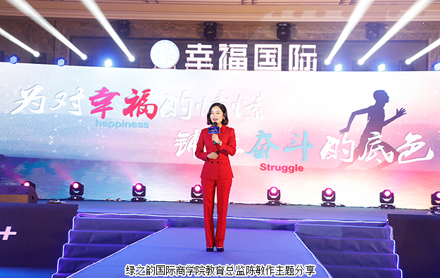 “綠色的信念在燃燒,綠色的愛在環(huán)繞;讓我的陪伴,成為依靠,為了你的幸?!痹谝黄ぐ旱臉非曋?,全場(chǎng)齊聲合唱綠之韻幸福國(guó)際主題曲《為了你的幸?!?。隨后,綠之韻國(guó)際商學(xué)院教育總監(jiān)陳敏作《幸福的力量》主題演講,從新零售的角度進(jìn)一步向綠之韻家人們闡述綠之韻幸福國(guó)際的核心價(jià)值體系、技術(shù)領(lǐng)先優(yōu)勢(shì)、市場(chǎng)經(jīng)營(yíng)策略和未來發(fā)展規(guī)劃。