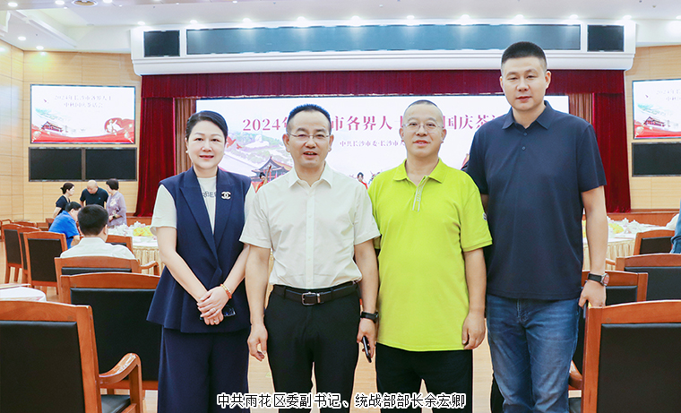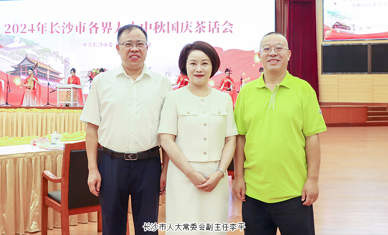 2024年9月13日,長(zhǎng)沙市各界人士中秋國(guó)慶茶話(huà)會(huì)舉行。中共湖南省委常委、長(zhǎng)沙市委書(shū)記吳桂英出席并講話(huà)。中共長(zhǎng)沙市委副書(shū)記、湖南湘江新區(qū)(長(zhǎng)沙高新區(qū))黨工委書(shū)記、岳麓區(qū)委書(shū)記譚勇,市人大常委會(huì)黨組書(shū)記、主任文樹(shù)勛,市政協(xié)主席、黨組書(shū)記陳剛,市委常委、長(zhǎng)沙警備區(qū)政委馮紫英,市委常委、常務(wù)副市長(zhǎng)彭華松,市委常委、市委統(tǒng)戰(zhàn)部部長(zhǎng)劉匯等市領(lǐng)導(dǎo)和老同志出席。長(zhǎng)沙市人大代表、香港長(zhǎng)沙聯(lián)誼會(huì)會(huì)長(zhǎng)、綠之韻集團(tuán)董事長(zhǎng)胡國(guó)安,湖南省政協(xié)委員、長(zhǎng)沙市工商聯(lián)(總商會(huì))副會(huì)長(zhǎng)、綠之韻集團(tuán)總裁勞嘉與全市各界人士代表歡聚一堂,飲一杯清茶,道一聲祝福,話(huà)一方發(fā)展。