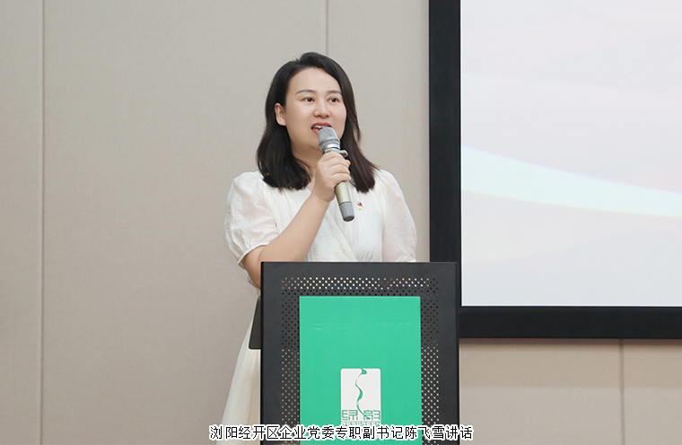 活動(dòng)最后,瀏陽經(jīng)開區(qū)企業(yè)黨委專職副書記陳飛雪講話。她首先感謝了瀏陽經(jīng)開區(qū)非公黨建第一片區(qū)對(duì)園區(qū)非公黨建工作的支持。今天是9.30烈士紀(jì)念日,她向大家分享了自己的曾祖父作為一名烈士英勇犧牲的故事,說到動(dòng)情之處,聲音哽咽。隨后,她提出了三點(diǎn)要求:一是家國(guó)情懷需要弘揚(yáng)傳承。家國(guó)情懷在增強(qiáng)民族凝聚力、建設(shè)幸福家庭、提高公民意識(shí)等方面都有重要的時(shí)代價(jià)值。家國(guó)情懷的核心是愛黨、愛國(guó),是非公企業(yè)需要大力倡導(dǎo)的,是基層黨組織需要大力弘揚(yáng)的。藍(lán)思科技、綠之韻、東風(fēng)藥業(yè)等園區(qū)優(yōu)秀企業(yè)堅(jiān)持抓黨建促發(fā)展不動(dòng)搖,注重厚植黨員群眾的家國(guó)情懷,實(shí)現(xiàn)了黨建強(qiáng)、發(fā)展強(qiáng)的目標(biāo)。二是企業(yè)文化需要貼近員工。企業(yè)厚植家國(guó)情懷的一個(gè)重要抓手就是企業(yè)文化欣欣向榮,文體活動(dòng)豐富多彩,就是接地氣、有底氣、聚人氣、冒熱氣。三是片區(qū)活動(dòng)需要常抓常新。隨著瀏陽經(jīng)開區(qū)非公企業(yè)黨組織的不斷增加,各個(gè)片區(qū)黨組織一起策劃活動(dòng),一起聯(lián)誼交流,一起進(jìn)步提升,取得了非常好的效果。她希望,第一片區(qū)的黨建活動(dòng)越來越精彩紛呈,越來越活力奮發(fā),用實(shí)際行動(dòng)為奮力譜寫瀏陽經(jīng)開區(qū)非公黨建高質(zhì)量發(fā)展的新篇章貢獻(xiàn)力量。