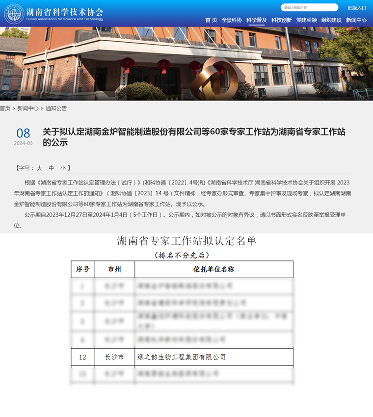 近日,根據(jù)《湖南省專家工作站認(rèn)定管理辦法(試行)》(湘科協(xié)通(2022〕4號)和《湖南省科學(xué)技術(shù)廳 湖南省科學(xué)技術(shù)協(xié)會關(guān)于組織開展2023年湖南省專家工作站認(rèn)定工作的通知》(湘科協(xié)通〔2023〕14號)文件精神,經(jīng)專家辦形式審查、專家集中評審及現(xiàn)場考察,認(rèn)定了66家湖南省專家工作站,綠之韻集團(tuán)獲評上榜。這一榮譽(yù)不僅是對綠之韻集團(tuán)在科研創(chuàng)新、人才引進(jìn)及培養(yǎng)方面工作的高度認(rèn)可,也標(biāo)志著綠之韻集團(tuán)在推動地方經(jīng)濟(jì)和社會發(fā)展中所作出的努力得到了省級層面的支持。