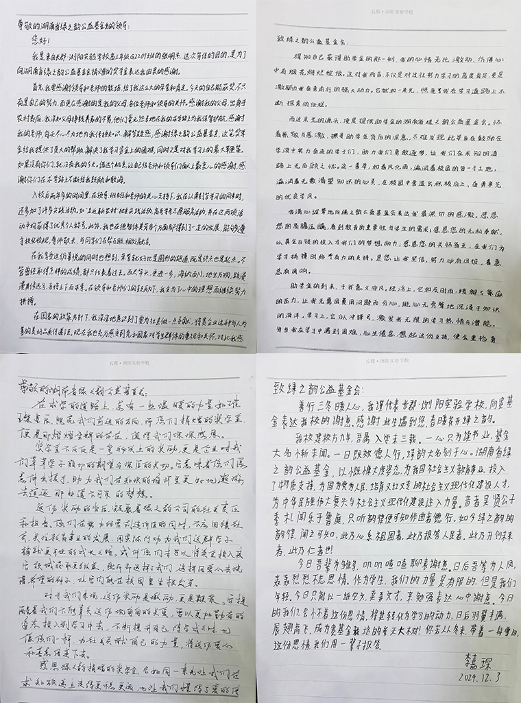捐贈(zèng)儀式上,肖校長(zhǎng)致歡迎辭,他首先對(duì)參加本次捐贈(zèng)儀式的領(lǐng)導(dǎo)和嘉賓表示熱烈歡迎,對(duì)善舉致以誠(chéng)摯的謝意,匯報(bào)了長(zhǎng)郡瀏陽(yáng)實(shí)驗(yàn)學(xué)校的辦學(xué)理念、管理制度以及取得的成績(jī)。他表示,長(zhǎng)郡瀏陽(yáng)實(shí)驗(yàn)學(xué)校是經(jīng)瀏陽(yáng)市人民政府批準(zhǔn)與長(zhǎng)郡中學(xué)合作辦學(xué)的一所12年一貫制公辦學(xué)校,在瀏陽(yáng)市政府支持下、在長(zhǎng)郡中學(xué)的委托管理和引領(lǐng)下取得了比較好的成績(jī),成為瀏陽(yáng)市辦學(xué)的成功典范,也成為瀏陽(yáng)教育對(duì)外展示的窗口。感謝園區(qū)領(lǐng)導(dǎo)、園區(qū)企業(yè)的大力支持,才有了今天的成績(jī)。此次愛(ài)心捐贈(zèng),為學(xué)校解決了后顧之憂,為學(xué)校的困難學(xué)生、優(yōu)秀學(xué)生帶來(lái)新的希望,為教育注入溫暖力量。學(xué)生們滿懷感激之情,自發(fā)手寫(xiě)了多封感謝信,感謝綠之韻集團(tuán)為學(xué)校捐資助教,對(duì)學(xué)子們的大力支持。未來(lái),希望能加強(qiáng)校企聯(lián)合,學(xué)校將推動(dòng)校企資源的深度融合,為企業(yè)輸送更多優(yōu)質(zhì)人才儲(chǔ)備力量,打造更優(yōu)質(zhì)的辦學(xué)典范,為瀏陽(yáng)教育發(fā)展貢獻(xiàn)力量。