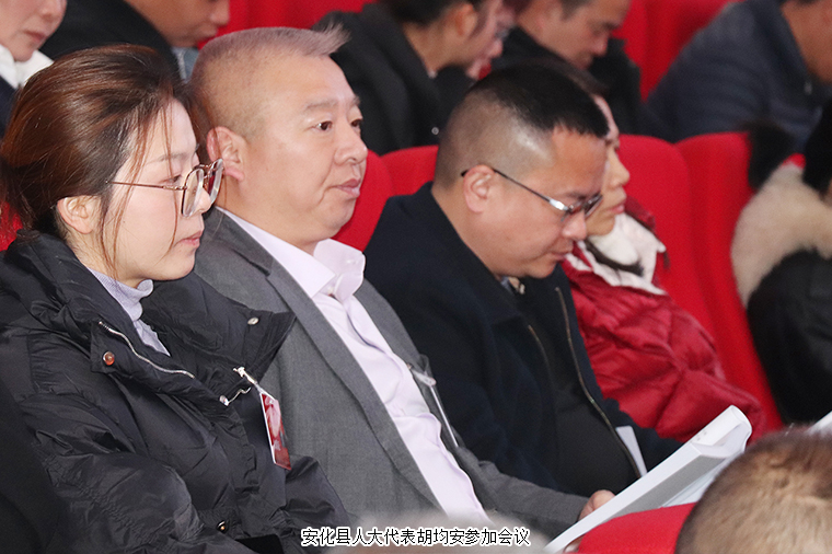安化大劇院內(nèi)氣氛莊重?zé)崃?,主席臺帷幕正中的國徽在鮮艷的紅旗映襯下熠熠生輝。上午8點30分,大會在莊嚴(yán)的國歌聲中開幕。開幕大會由安化縣人大常委會主任陳飛燕主持。本次大會執(zhí)行主席由陳飛燕、(以下按姓氏筆畫為序)王定巖、鄧群林、石錄明、龍要平、盧映云、代虹宇、劉斌、劉百戰(zhàn)、劉建輝、李志生、李艷云、羅偉民、 胡能華、胡能新、鐘曙波、曹石多、潘文劍擔(dān)任。安化縣領(lǐng)導(dǎo)魯志堅、李德輝、謝可贊、廖小甫、郭環(huán)球、楊正華等在主席臺就座。大會應(yīng)到代表340人,實到313人,因事因病請假27人,符合法定人數(shù)。安化縣人大代表、益陽市工商聯(lián)(總商會)副會長、綠之韻集團常務(wù)副總裁胡均安參加大會。