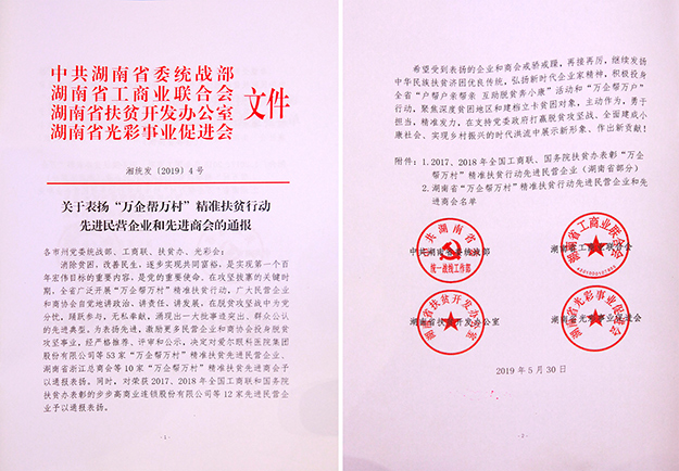 戶幫戶親幫親,互助脫貧奔小康。2019年6月4日,湖南省“萬(wàn)企幫萬(wàn)村”精準(zhǔn)扶貧行動(dòng)先進(jìn)表?yè)P(yáng)暨“萬(wàn)企幫萬(wàn)戶”行動(dòng)動(dòng)員大會(huì)在長(zhǎng)沙召開。中共湖南省委常委、統(tǒng)戰(zhàn)部部長(zhǎng)黃蘭香,湖南省政協(xié)副主席、省工商聯(lián)主席張健,中共湖南省委副秘書長(zhǎng)秦國(guó)文,中共湖南省委統(tǒng)戰(zhàn)部常務(wù)副部長(zhǎng)譚平,中共湖南省委統(tǒng)戰(zhàn)部副部長(zhǎng)、省工商聯(lián)黨組書記陳瀟等領(lǐng)導(dǎo)出席會(huì)議。