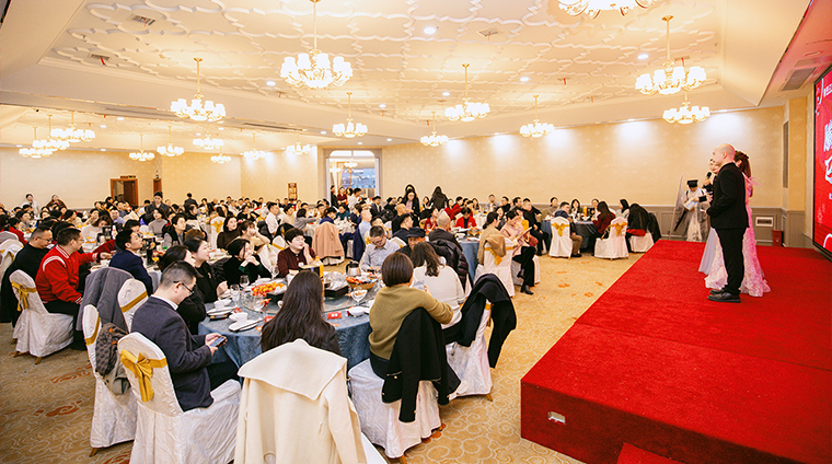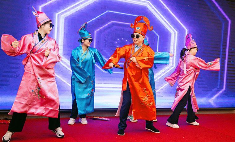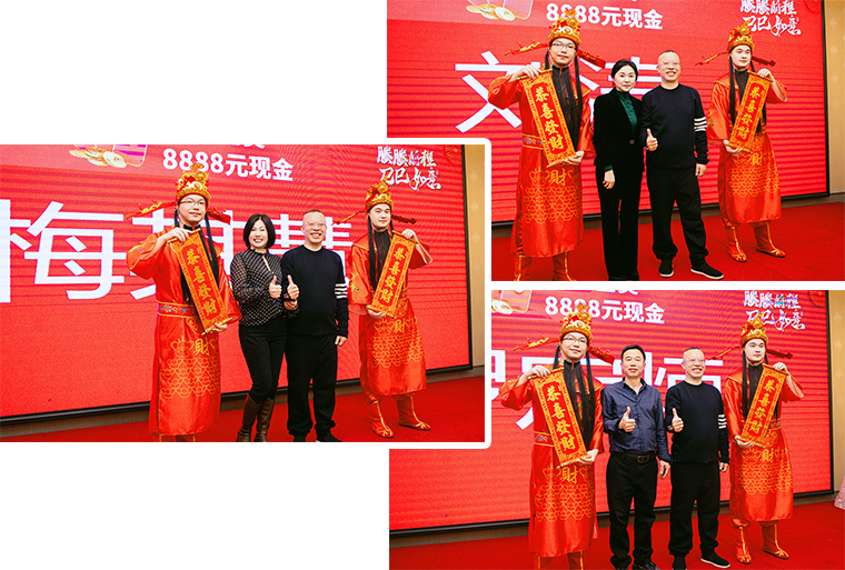 隨后,螣螣前程 巳巳如意——2024年新春團(tuán)拜會(huì)啟幕,瞬間點(diǎn)燃全場(chǎng)激情。舞臺(tái)上,舞者似靈動(dòng)精靈,舞步輕盈,踏響新年節(jié)拍;靈魂歌手一展天籟,歌聲悠揚(yáng),唱響新春樂章;創(chuàng)意小品,奇思妙想;財(cái)神舞,喜氣洋洋燃爆全場(chǎng);抽獎(jiǎng)環(huán)節(jié)更是將全場(chǎng)氛圍一次次推向高潮,歡呼聲與祝福聲交織,驚喜與歡樂在會(huì)場(chǎng)四處綻放,每一個(gè)綠之韻人沉浸其中,其樂融融。最后,全體綠之韻家人舉杯同慶,在這熱鬧非凡的氛圍中,共同憧憬新一年的輝煌。