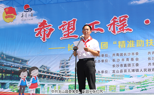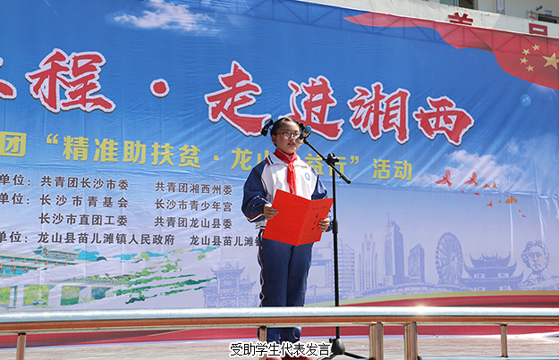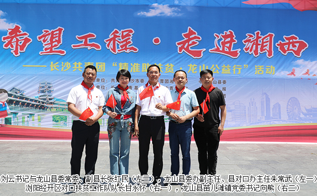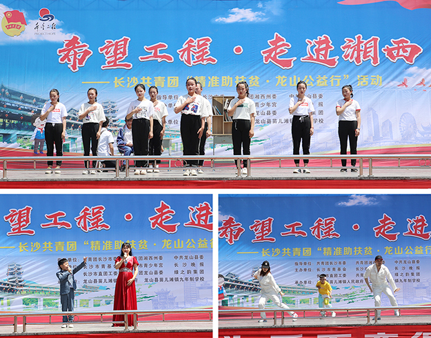 2019年5月21-23日,希望工程·走進(jìn)湘西——長(zhǎng)沙共青團(tuán)“精準(zhǔn)助扶貧·龍山公益行”活動(dòng)在龍山縣苗兒灘鎮(zhèn)九年制學(xué)校舉行。共青團(tuán)長(zhǎng)沙市委副書記康然、何平,長(zhǎng)沙市直機(jī)關(guān)工委委員、宣傳部長(zhǎng)陳國勝,共青團(tuán)湘西州委副書記王丹子,中共龍山縣委常委、縣人民政府副縣長(zhǎng)張紅民,長(zhǎng)沙市青基會(huì)羊舒麟等領(lǐng)導(dǎo)出席活動(dòng)。綠之韻集團(tuán)黨委書記劉云及愛心企業(yè)、社會(huì)愛心人士、受助學(xué)生代表等1000余人參加本次活動(dòng)。