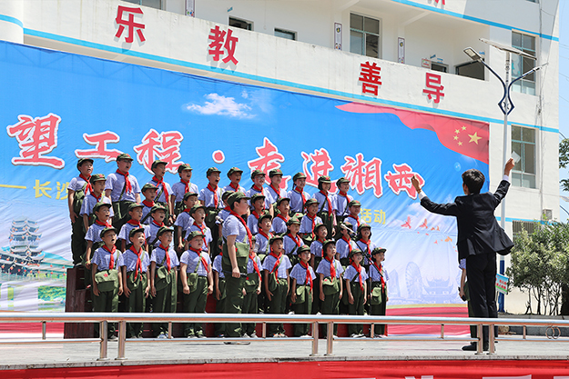 捐贈(zèng)儀式結(jié)束后,長(zhǎng)沙市青少年宮組織藝術(shù)團(tuán)的小演員們與苗兒灘學(xué)校的學(xué)生們共同獻(xiàn)上了一場(chǎng)豐富多彩的文藝演出。孩子們用動(dòng)人的歌聲、歡快的舞姿、動(dòng)感的表演,充分展現(xiàn)了他們朝氣蓬勃、昂揚(yáng)向上的精神風(fēng)貌。