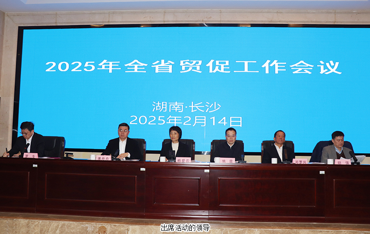 2月14日,2025年湖南省貿(mào)促工作會(huì)議在長(zhǎng)沙召開。會(huì)議堅(jiān)持以習(xí)近平新時(shí)代中國特色社會(huì)主義思想為指導(dǎo),全面貫徹落實(shí)二十屆二中、三中全會(huì)精神,貫徹落實(shí)全國貿(mào)促工作會(huì)議、省委十二屆八次全會(huì)暨省委經(jīng)濟(jì)工作會(huì)議、省“兩會(huì)”部署,總結(jié)2024年工作,分析當(dāng)前形勢(shì),部署2025年工作任務(wù)。湖南省貿(mào)促會(huì)黨組書記、會(huì)長(zhǎng)楊愛云作工作報(bào)告。湖南省貿(mào)促會(huì)領(lǐng)導(dǎo)班子成員傅丹舟、鄧羅興、羅專、胡強(qiáng)等會(huì)領(lǐng)導(dǎo)出席會(huì)議。湖南省商務(wù)廳黨組成員、省紀(jì)委監(jiān)委駐省商務(wù)廳紀(jì)檢監(jiān)察組組長(zhǎng)姚震出席會(huì)議。中國國際商會(huì)湖南商會(huì)副會(huì)長(zhǎng)、湖南省慈善總會(huì)副會(huì)長(zhǎng)、綠之韻集團(tuán)董事長(zhǎng)胡國安參加會(huì)議。