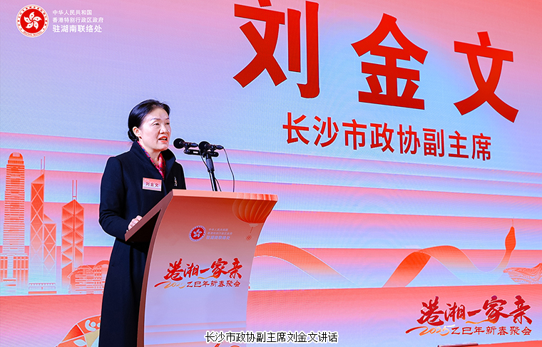 長(zhǎng)沙市政協(xié)副主席劉金文在致辭中表示,過(guò)去一年,在中央領(lǐng)導(dǎo)及“一國(guó)兩制”指引下,香港保持穩(wěn)定,在國(guó)際舞臺(tái)彰顯魅力;長(zhǎng)沙在市委市政府領(lǐng)導(dǎo)下,全球經(jīng)濟(jì)城市建設(shè)穩(wěn)步推進(jìn),營(yíng)商環(huán)境、幸福感城市排名亮眼。此新春晚會(huì)已舉辦六屆,體現(xiàn)兩地密切聯(lián)系,越來(lái)越多港人港企來(lái)長(zhǎng)沙發(fā)展。2025年是蛇年,也是機(jī)遇與挑戰(zhàn)并存的一年,隨著“一帶一路”、粵港澳大灣區(qū)建設(shè)等戰(zhàn)略深入實(shí)施,長(zhǎng)沙與香港迎來(lái)新機(jī)遇。長(zhǎng)沙作為長(zhǎng)江中游中心城市,產(chǎn)業(yè)、創(chuàng)新資源豐富,香港是國(guó)際金融、貿(mào)易和航運(yùn)中心,兩地優(yōu)勢(shì)互補(bǔ)潛力巨大。我們堅(jiān)信,只要攜手深化合作,就一定能夠在新時(shí)代的浪潮中共創(chuàng)輝煌。